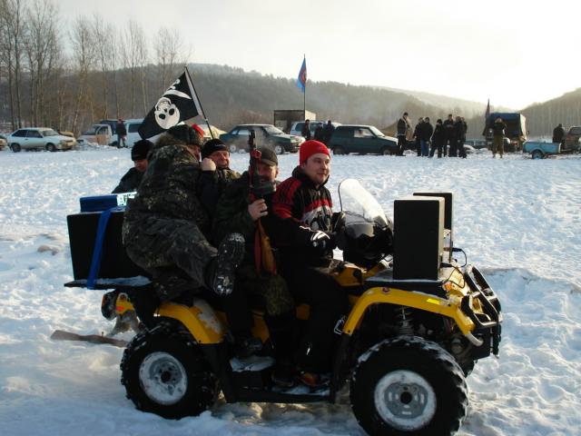 Бродя по полю было встречено множество знакомых лиц. С большинством из них я познакомился в прошлом сезоне. Самарцы, Тольяттицы, Саранцы, Чебоксарцы, Йошкар-Олинцы… Кого только не было. А народ тем временем прибывал. Самые отмороженные хреначили прямо по Волге. Причом шли и на мотах, и на снегоходах, и на афтах!
